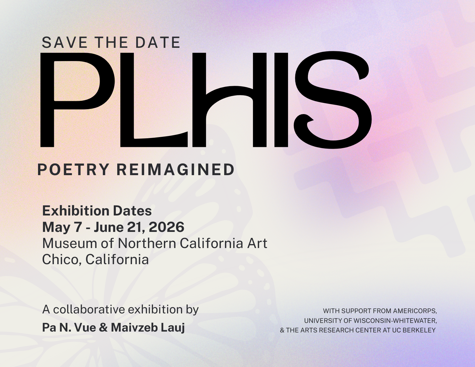 “Plhis: Poetry Reimagined Through Art” is a collaborative exhibit between literary artist Pa N. Vue and multimedia artist Maivzeb Lauj. This project explores how poetic works can “plhis” or “be transformed” from their original textual and aural form and emerge reimagined through multimedia and multimodal visual expressions. “Plhis” evokes the essence of transformation and rebirth, reflecting how meaning shifts, evolves, and finds new life when moving between artistic languages. Maivzeb will select poems from Pa’s collection Sawv Tsees Rov Hlo Los and re-present them as immersive multimodal art forms using multiple forms of media, including digital, textile, and paper.